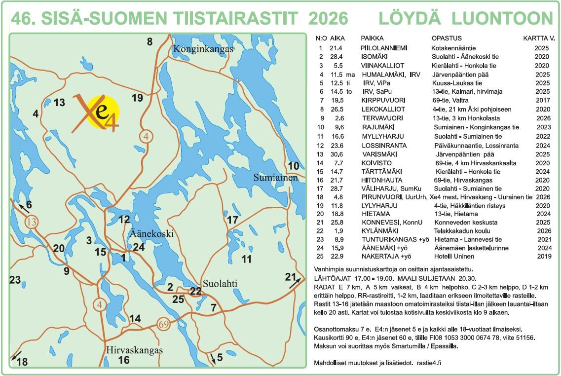 Karttamaksu: 7€, Rasti E4 jäsenet 5€, alle 18v. ilmaiseksi